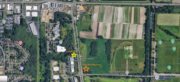 Had we gone up the following year to see them, we would have been disappointed. Without telling anyone, more than half of the crows ditched Bothell in favor of a natural area about four miles (as the crow flies) to the southeast in Redmond. By January 2025, the Bothell roost was no more.