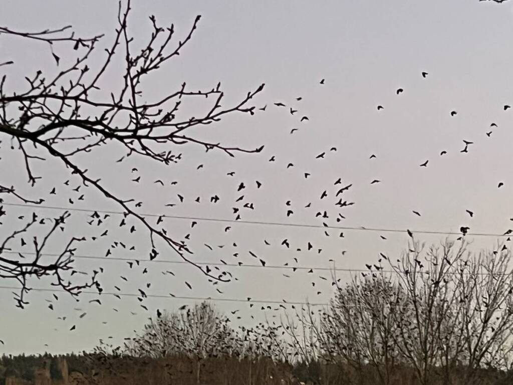 If you live under the flight path to a crow roost, you’ll know it by the appearance of hundreds of black birds sprinkling the early evening sky, all of them going more or less in the same direction.